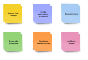Podemos definir algunos elementos que ayuden a respondernos si ¿soy feliz en el trabajo? A continuación, una lista de verificación gráfica para reflexionar sobre los aspectos con los que nos sentimos identificados.